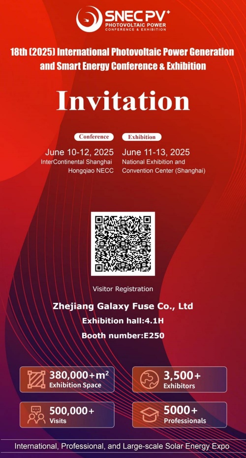 يسعدنا أن نعلن ذلكZhejiang Galaxy Fuse Co. ، Ltd. سوف يعرض في المقبل18 (2025) مؤتمر ومعرض الطاقة الكهروضوئية الدولية والمعرض (SNEC PV+ 2025)في شنغهاي. كحدث سنوي رئيسي في قطاعات الطاقة الكهروضوئية والجديدة ، يجمع SNEC PV+ بين الشركات العالمية والمهنيين العالميين لمناقشة اتجاهات الصناعة وعرض أحدث التقنيات والمنتجات.